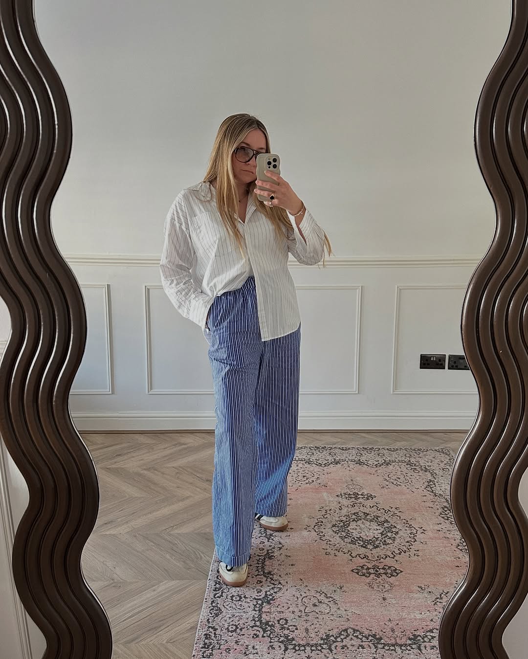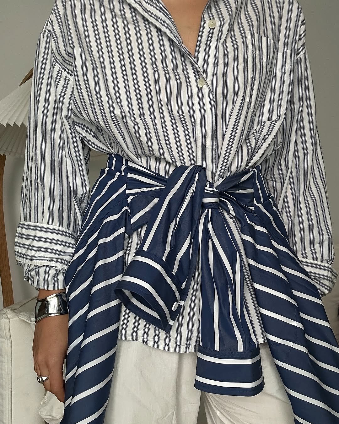 Okay, not precisely a shade combo, however it’s a glance we needed to embrace. Depart it to Europeans to make carrying stripes on stripes look stylish. From pinstriped button-downs layered underneath wide-striped trousers to nautical tees paired with contrasting stripe skirts, it’s all about creating dimension whereas holding the palette clear and intentional. The vibe? Easy however editorial—precisely how summer time dressing ought to really feel.