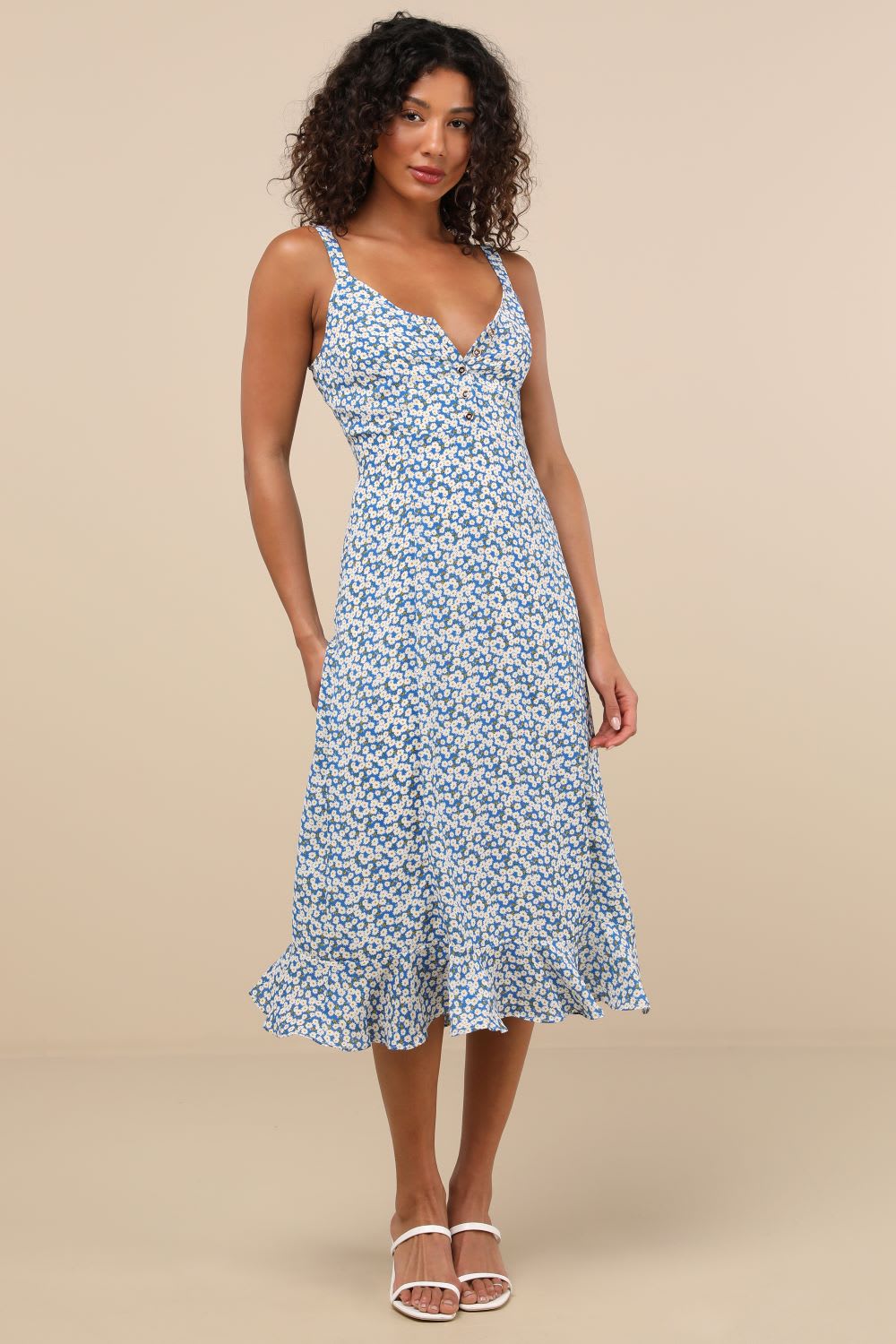 Store the Look: Darling Daisies Blue Floral Print Midi Gown