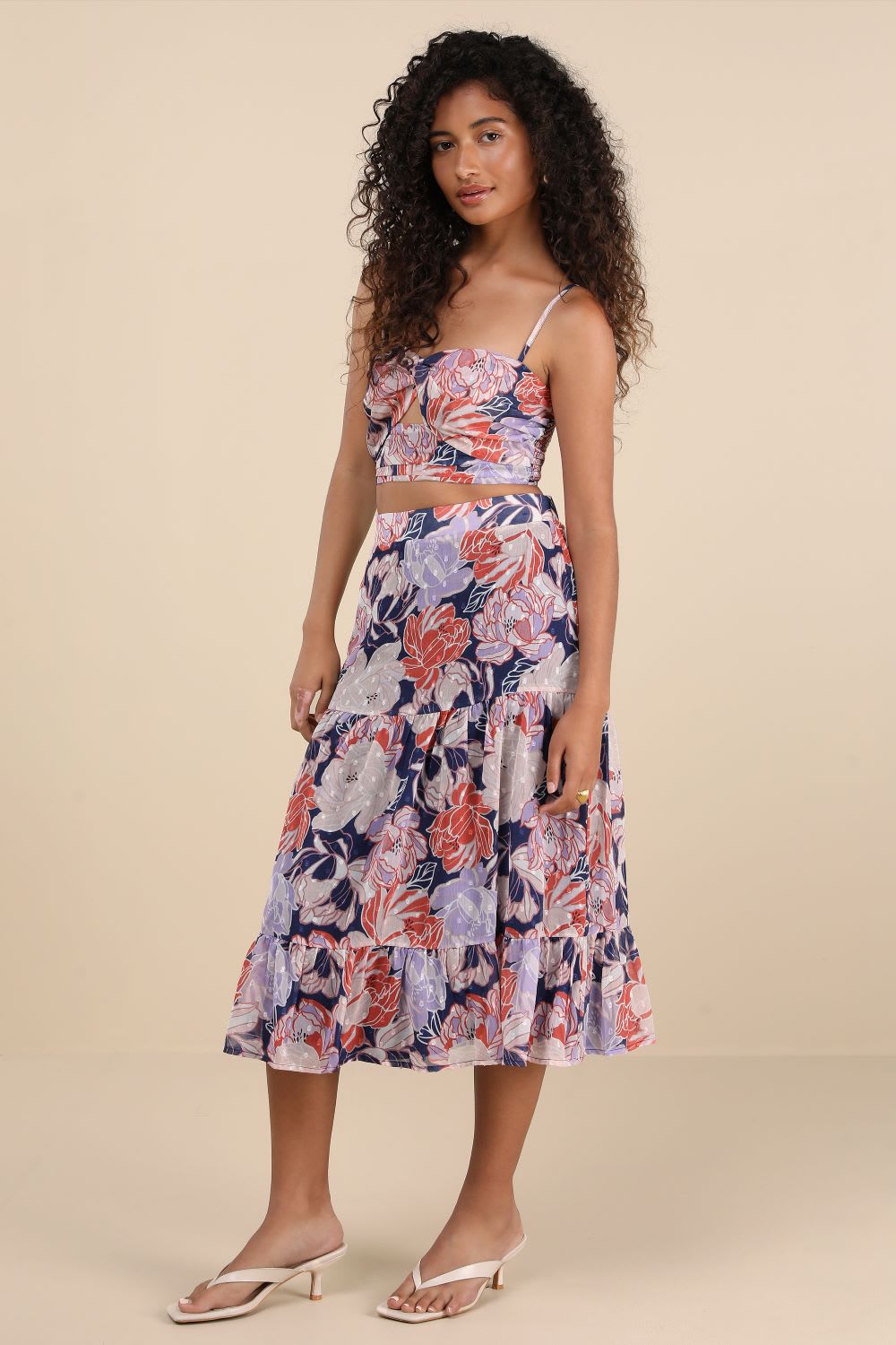 Store the Look: Floating By Flowers Multi Floral Two-Piece Midi Gown
