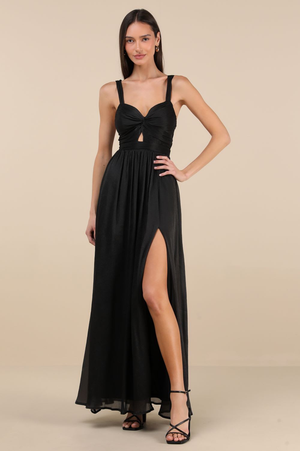 Store the Look: Leyton Black Crinkle Knotted Backless Maxi Gown