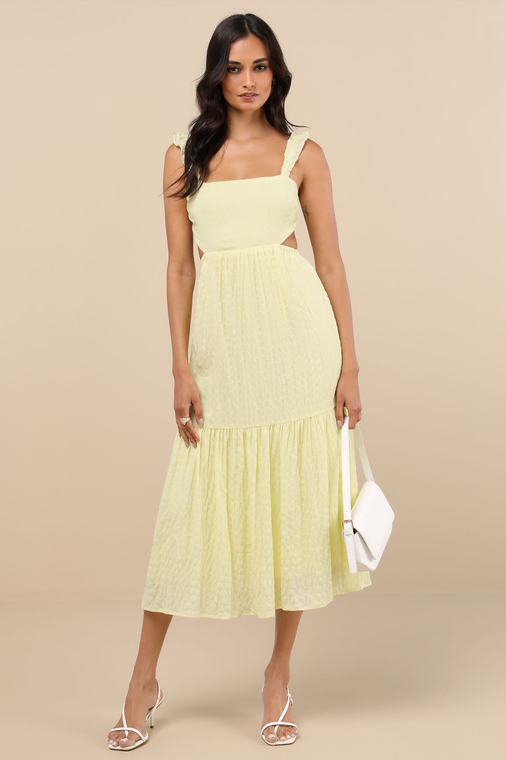 Store the Look: Dreamiest Darling Yellow Smocked Tie-Again Tiered Midi Gown