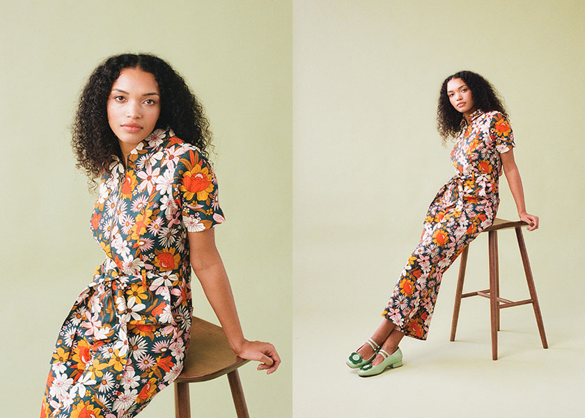 Mork Retro Floral Print Brief Sleeve Boilersuit, Good Leather-based Mary Jane Sneakers