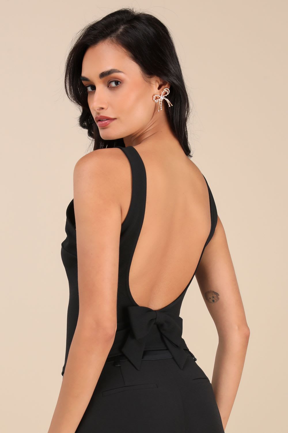 Store the Look : Fatima Black Backless Bow Prime